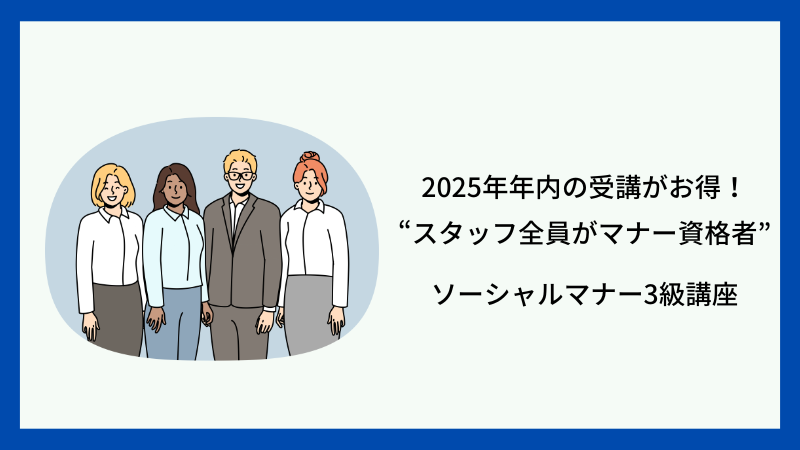 2025年年内の受講がお得!“スタッフ全員がマナー資格者”を実現するソーシャルマナー3級講座